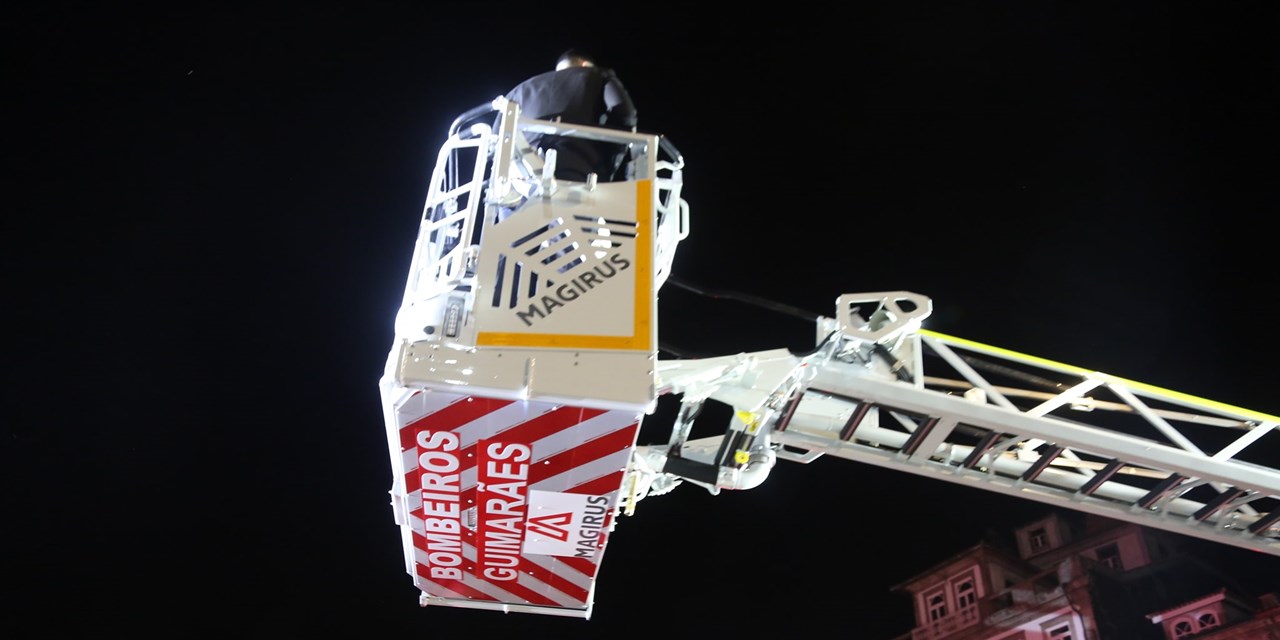 A Associação Humanitária dos Bombeiros Voluntários de Guimarães apresentou a nova autoescada para reforço do combate a incêndios urbanos e industriais a centenas de pessoas que se reuniram no Toural neste sábado à noite.