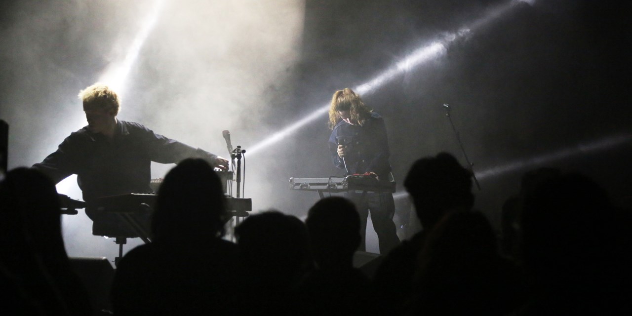 “Ahh, ayy, ooh, eee, ahh” – as interjeições projetadas pela voz de Georgia Ellery anunciaram um fim de festa à moda de I love you Jennifer B: última faixa do primeiro álbum dos Jockstrap, “50/50” deixou centenas a dançar sobre o palco do Grande Auditório Francisca Abreu, no Centro Cultural Vila Flor (CCVF), sábado à noite. A batida persistente desperta o lado mais experimental do duo londrino, assente em todo o manancial eletrónico na mão de Taylor Skye, mas a viagem que lhe precedeu, a rondar a hora, deu tempo para apreciar a sensibilidade pop que emergia quando a nitidez das melodias se acentuava em proporção idêntica à vulnerabilidade da letra.