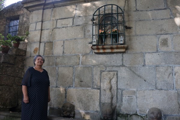 Emília Oliveira da Silva desce da casa altaneira, de onde se vê os blocos da Avenida D. João IV entre os ramos que a encobrem; repete um movimento que já conta milhares de vezes, mas agora com dificuldade. Desde a fratura no pé não pode olhar pelo “santinho” com a frequência a que se habituara, também em memória de um ritual que a mãe começara. “A minha mãe vinha aqui todos os dias”, declara ao Jornal de Guimarães. “Varria e asseava o santinho. Asseava também umas alminhas. Quando deixou, fiquei eu a assear. Faço tudo pelo santinho”.